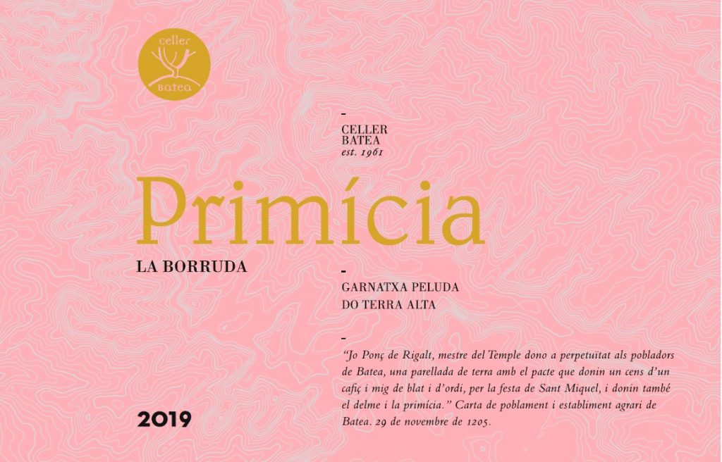 Under the name “La Borruda” (name as it is known in Terra Alta), Celler Batea presents to the public a rosé wine elaborated in Provençal style. Made with selected over 25 years grapes of the variety Garnacha peluda. In its elaboration The must is drip in the press without applying any pressure. A static racking at low temperature is done. In cement deposits to eliminate big wine sediments. The clean must is inoculated to ferment at controlled temperature.